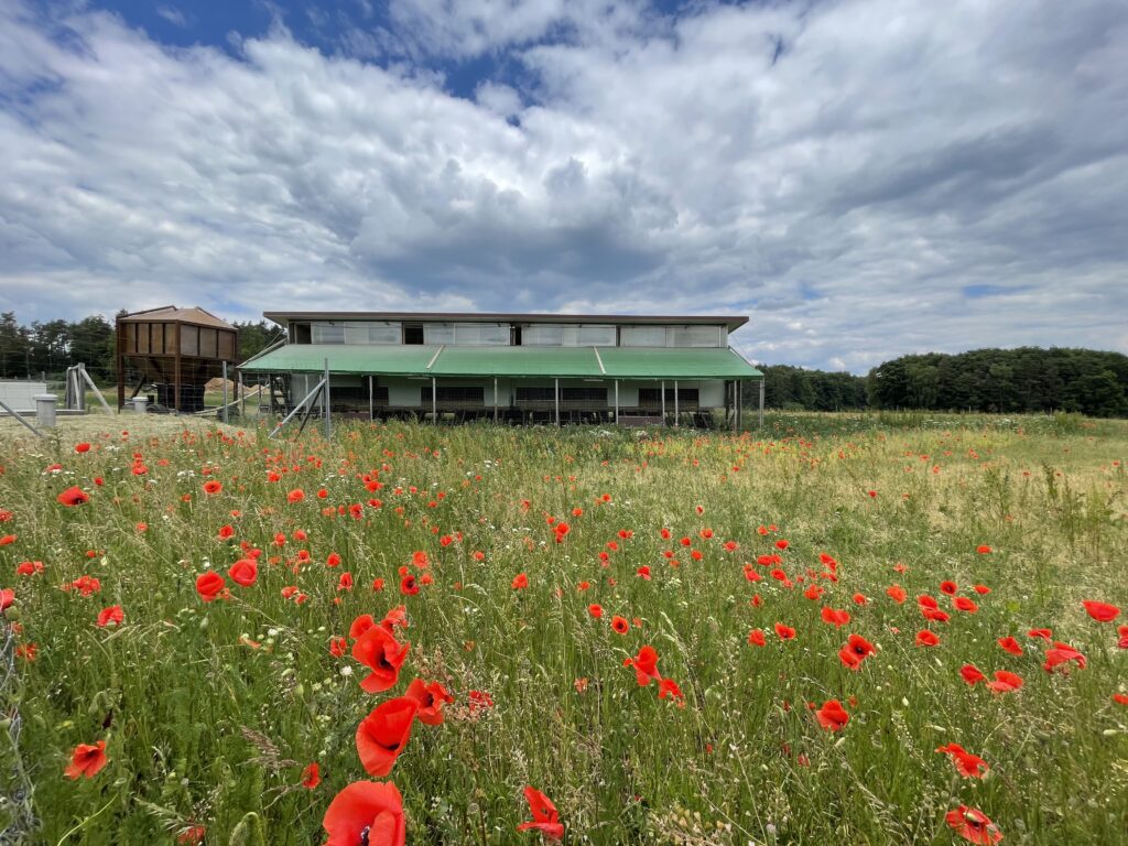 Auf unserem Hof wuchsen die Brüder unserer Legehennen bereits seit 2018 bis Ende 2023 in einem großzügigen Mobilstall mit Wintergarten und Grünauslauf heran, durften sich viel bewegen und nach Herzenslust krähen und scharren.